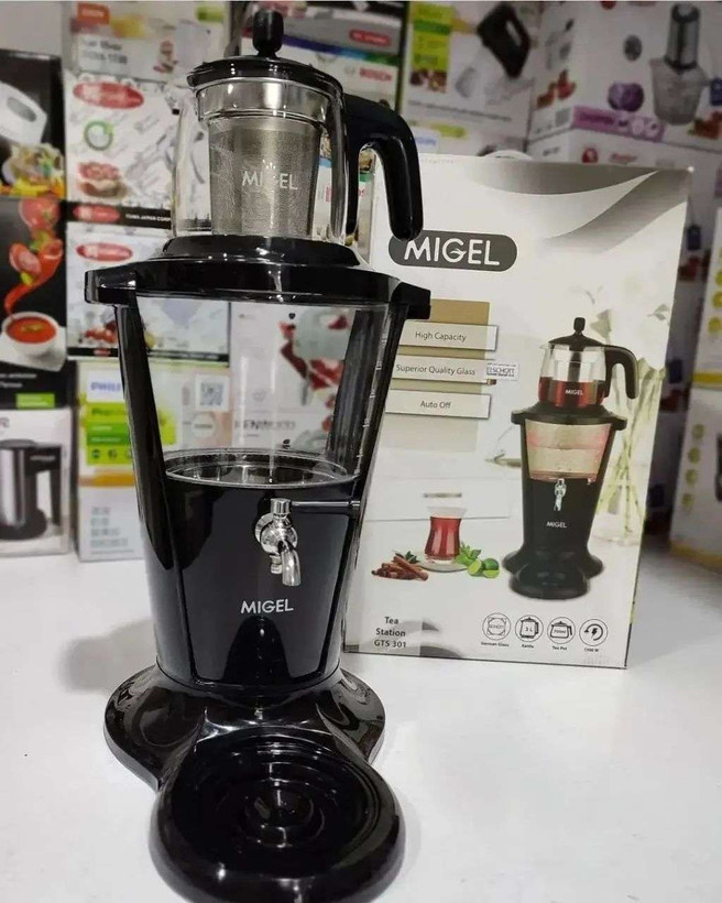 | امکانات و قابلیتها | سنسور الکترونیکی دما شیشه سماور (ساخت SCHOTT آلمان) مقاوم در برابر حرارت شیشه قوری مقاوم در برابر حرارت جنس فیلتر قوری استیل ضد زنگ ترموستات ایمنی (قطع جریان برق در حالت محفظه خشک) نشانگر میزان آب کتری چراغ نشانگر جوش آوری و گرم نگهداری محل جمع آوری سیم در زیر کفی خاموش شدن خودکار سینی چکه گیر دارای چراغ های نشانگر آبی هنگام گرمنگهداری و قرمز هنگام جوشآوری |